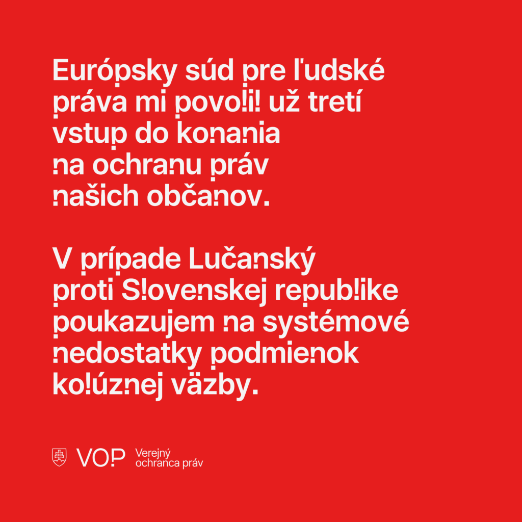 Úplné znenie mojej intervencie ako tretej strany (Intervention as a third party), ktorá bola dňa 13. januára 2026 doručená Európskemu súdu pre ľudské práva, je dostupné na webovom sídle Kancelárie verejného ochrancu práv. Rovnako je tam dostupná príloha k intervencii a jej preklad do slovenského jazyka zabezpečený prostredníctvom umelej inteligencie.