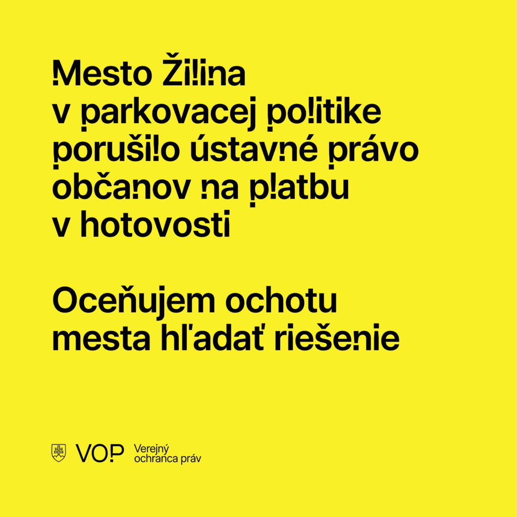 Oceňujem, že Mesto Žilina deklarovalo ochotu preskúmať možnosti zavedenia hotovostnej platby a očakáva, že toto opatrenie bude realizované tak, aby skutočne umožnilo občanom výkon ich základných práv v praxi.
