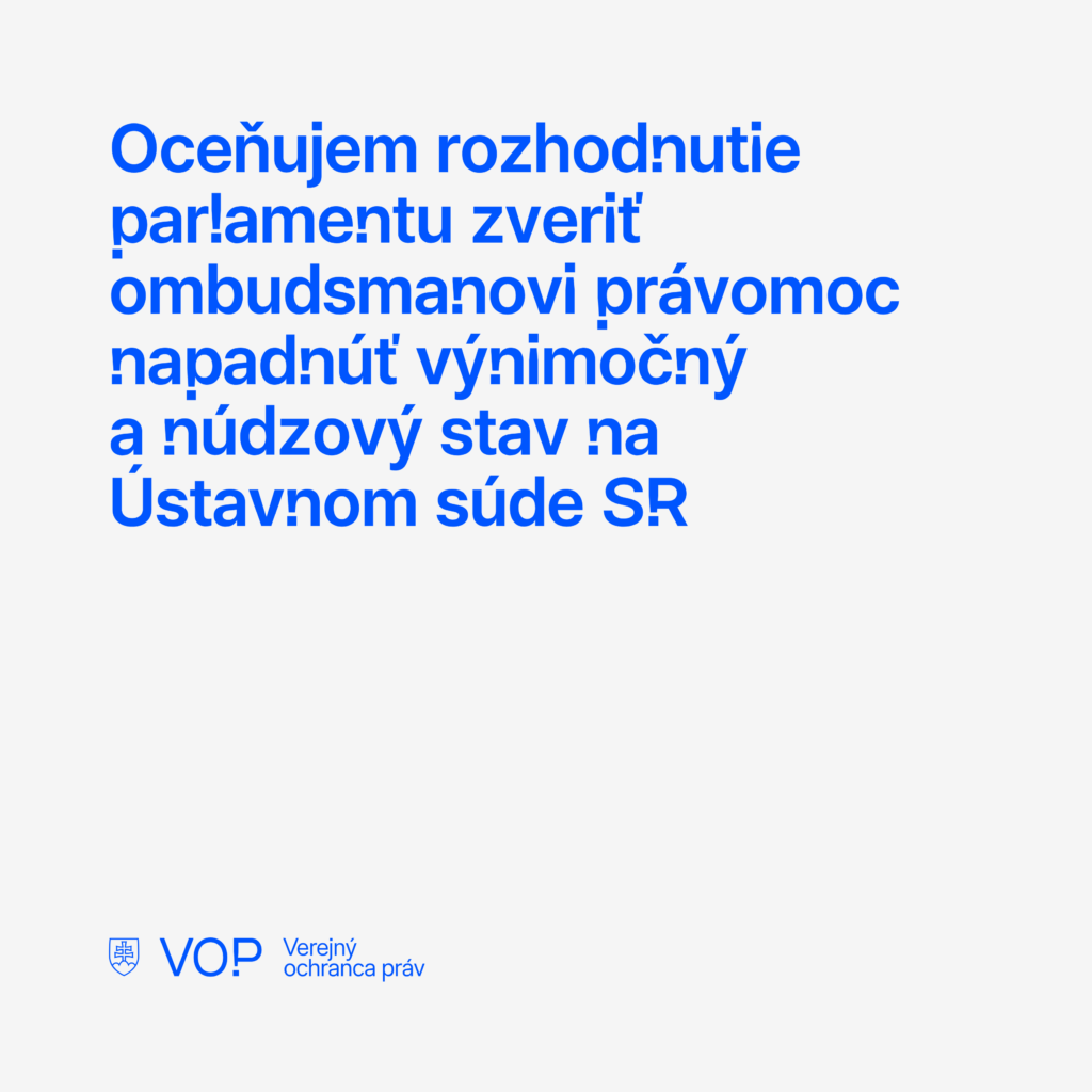 [Popis pre osoby so zrakovým znevýhodnením: Na fotke je nadpis a logo verejného ochrancu práv vo vizuálnej identite verejného ochrancu práv]