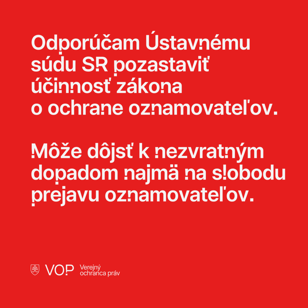 ODPORÚČAM ÚSTAVNÉMU SÚDU SR POZASTAVIŤ ÚČINNOSŤ ZÁKONA O OCHRANE OZNAMOVATEĽOV. MÔŽE DÔJSŤ K NEZVRATNÝM DOPADOM NAJMÄ NA SLOBODU PREJAVU OZNAMOVATEĽOV