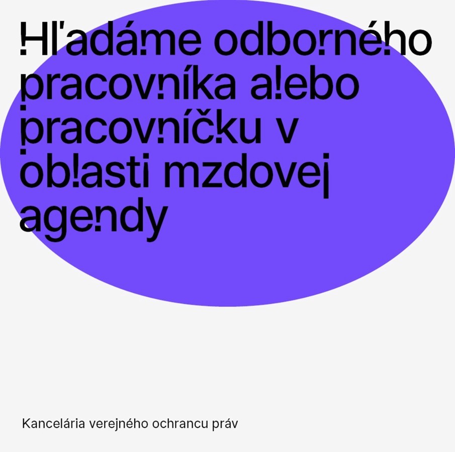 Vyhlasujeme výberové konanie na pozíciu odborný pracovník alebo pracovníčka mzdovej agendy, osobného úradu Kancelárie verejného ochrancu práv.