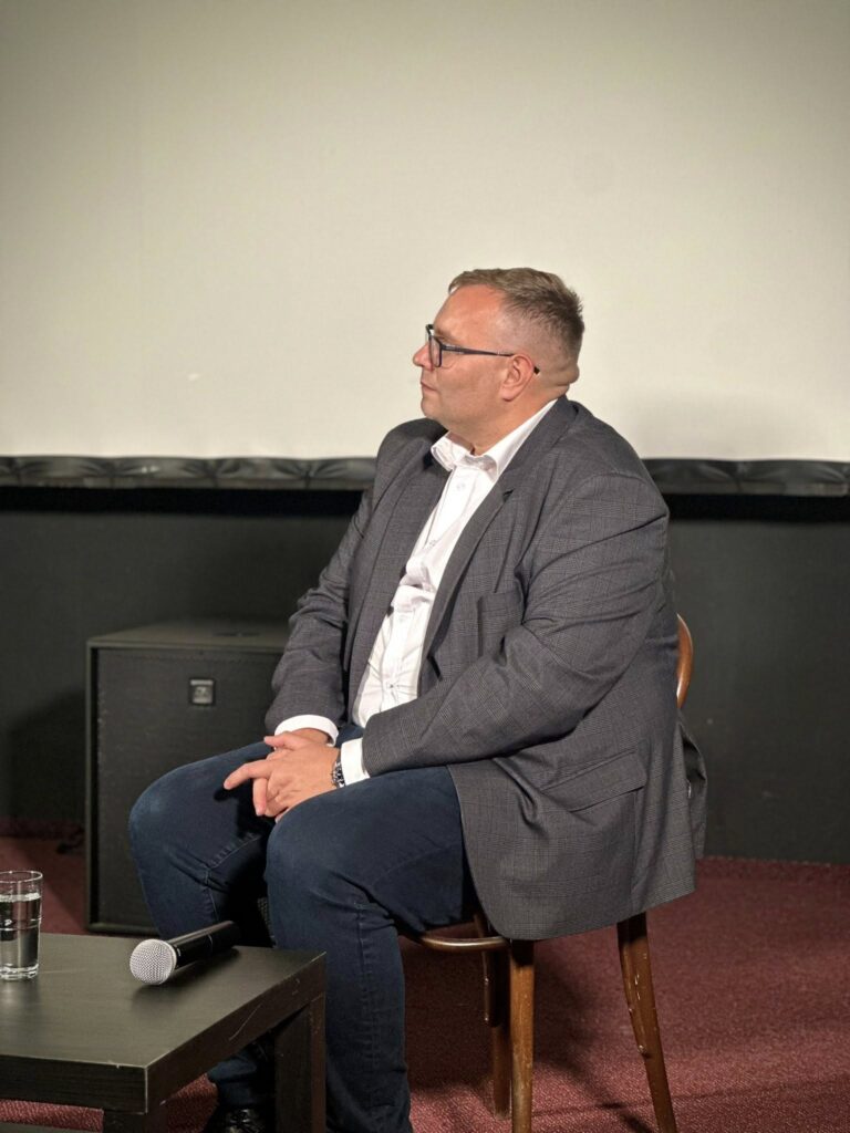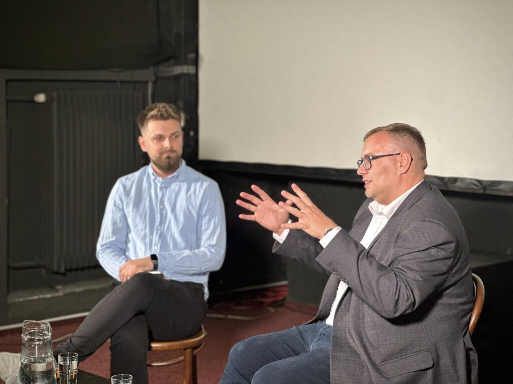 [Popis pre osoby so zrakovým znevýhodnením: Na fotkách je zachytený verejný ochranca práv počas diskusie]